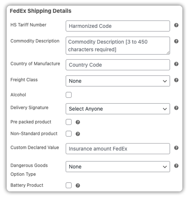 The WooCommerce Shipping Plugin for FedEx with Print Label has a feature that lets you add the commodity description on the FedEx shipping label. However, if you don’t mention anything in the description box, then, by default, the corresponding product name would appear on the label.
