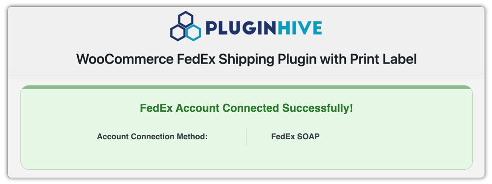 Your FedEx account has now been successfully connected using the SOAP connection method. You can proceed with the plugin configuration.